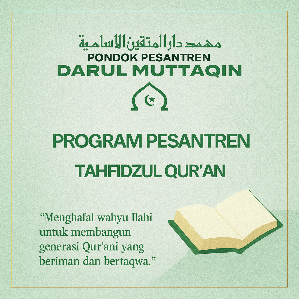 Pondok Pesantren Darul Muttaqin berkomitmen membangun insan beriman, berilmu, dan berdaya saing global melalui pendidikan Islam yang berkualitas dan berkarakter ahlussunnah wal jama’ah.